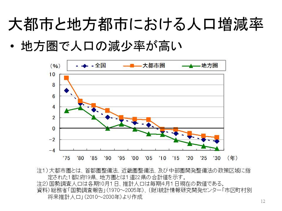 高度経済成長時代、都市への急速な人口流入に伴い、街なかの住環境は急激に悪化しました。それを解消するための方法として、街なかを高度利用する方向ではなく、公共交通機関を整え、通勤する方法で住環境の改善が図られました。
